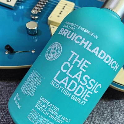 夏らしくブルーのウイスキーとエレキギター